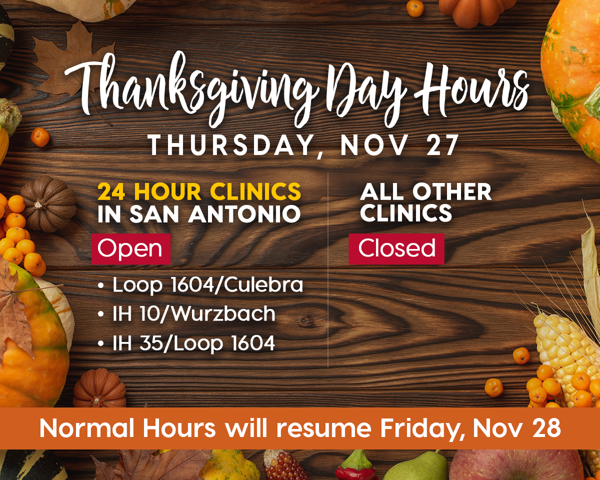 Whether you’re visiting Lumberton or spending time with family in Vidor, our Texas MedClinic Urgent Care locations are ready to care for your injury or illness. We’re open Monday – Friday, 8am – 8pm, Saturday, and Sunday, 9am to 5pm. You can walk right in.